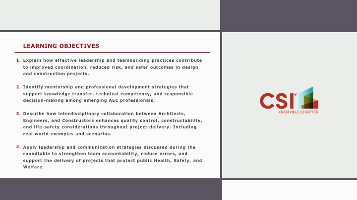 At the conclusion of the presentation, attendees will be invited to share their insights and experiences from the construction phase. Discussion will focus on ways to improve processes while meeting the increasing pace of project delivery – from contract award through closeout.